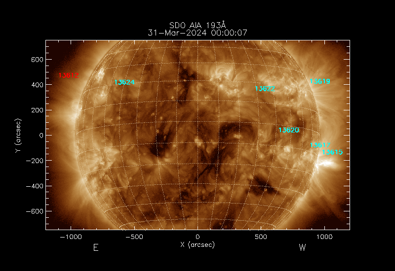 Note that some types of solar emission are more likely to be geo-effective if they originate from the western half to the disk