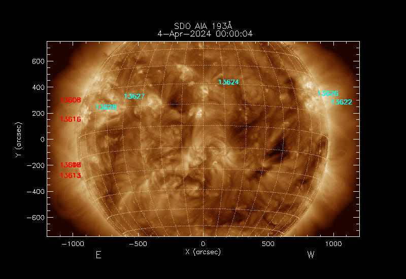 Note that some types of solar emission are more likely to be geo-effective if they originate from the western half to the disk
