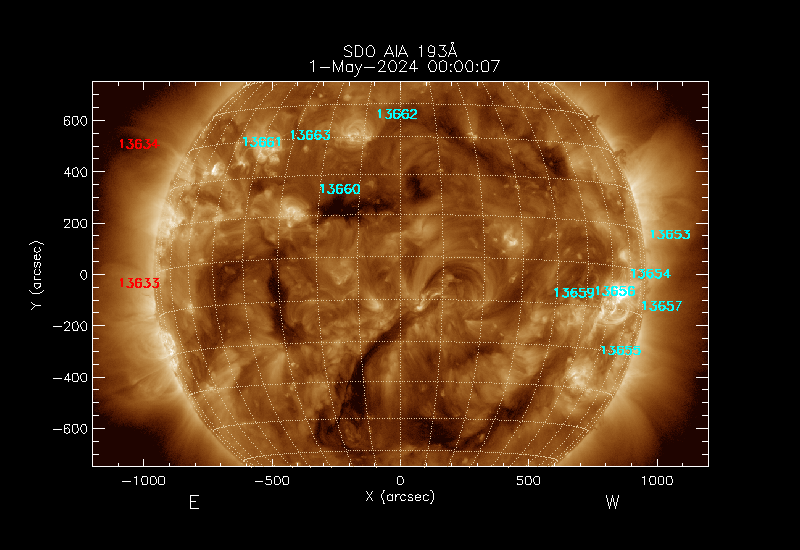 The 5 digit numbers in turquoise designate Active Regions;