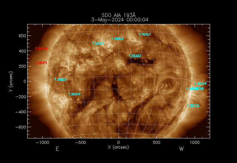 those in red (on the left hand side of the image) indicate where old Active Regions that could be returning.