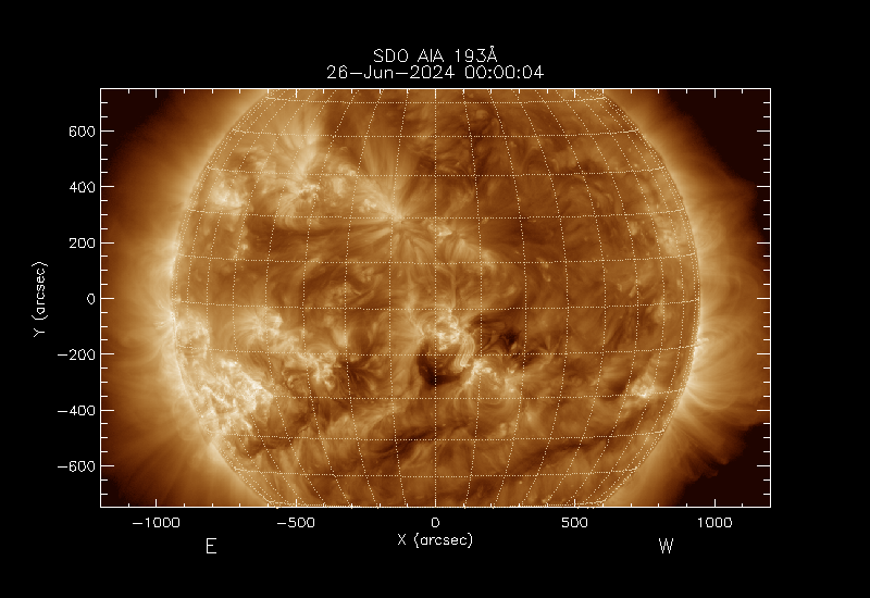 The image used is normally SDO AIA 193Å but PROBA2 SWAP 194Å images are used if no SDO data are available.