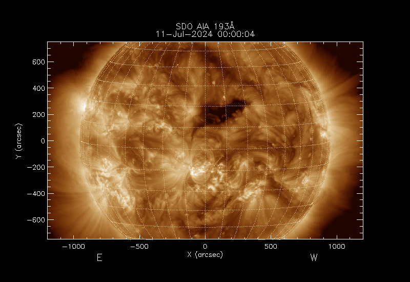 The image used is normally SDO AIA 193Å but PROBA2 SWAP 194Å images are used if no SDO data are available.