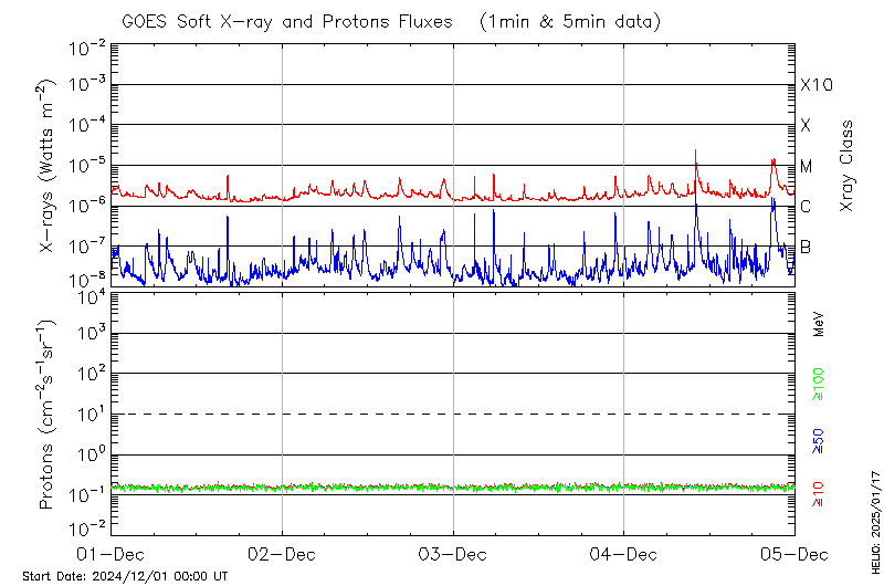 This page provides light-curves generated from GOES soft X-ray and Particle data for the date indicated at the top and the preceding three days.