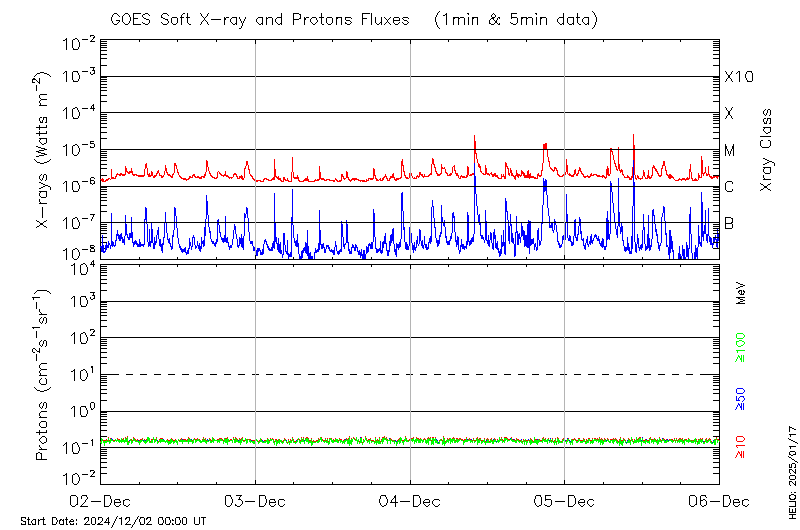 This page provides light-curves generated from GOES soft X-ray and Particle data for the date indicated at the top and the preceding three days.