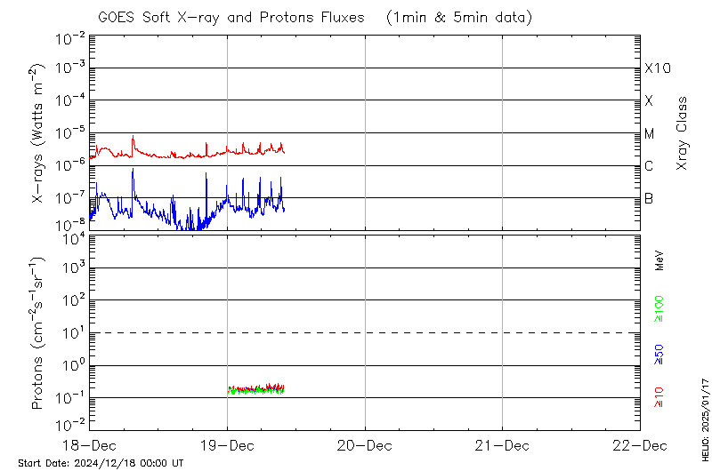 This page provides light-curves generated from GOES soft X-ray and Particle data for the date indicated at the top and the preceding three days.