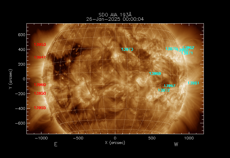 The 5 digit numbers in turquoise designate Active Regions;