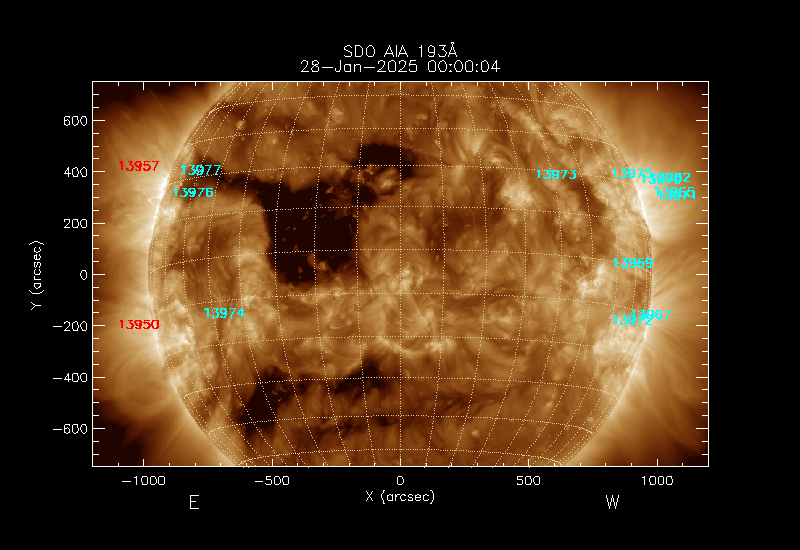 The 5 digit numbers in turquoise designate Active Regions;