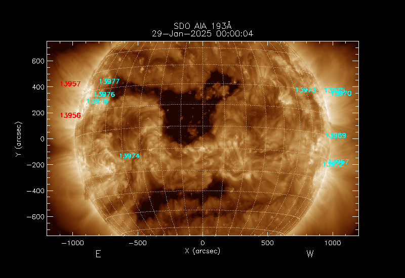 those in red (on the left hand side of the image) indicate where old Active Regions that could be returning.