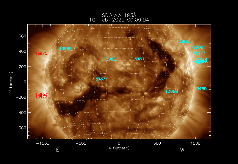 The image used is normally SDO AIA 193Å but PROBA2 SWAP 194Å images are used if no SDO data are available.