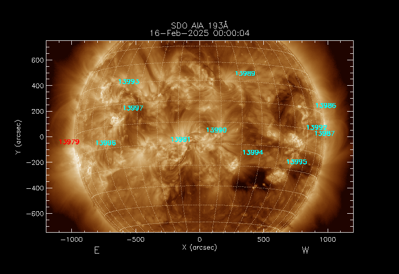 Click on an Active Region plot to display the Region Report including the region evolution and flaring history. HEC Search for NOAA Active Regions (SRS) records for this date and the day before.