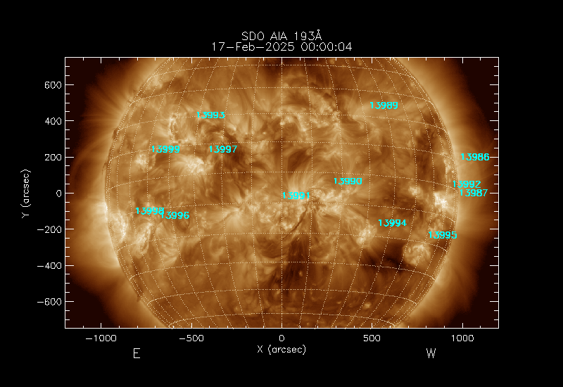 The 5 digit numbers in turquoise designate Active Regions;