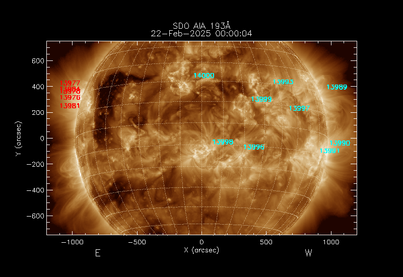 The 5 digit numbers in turquoise designate Active Regions;