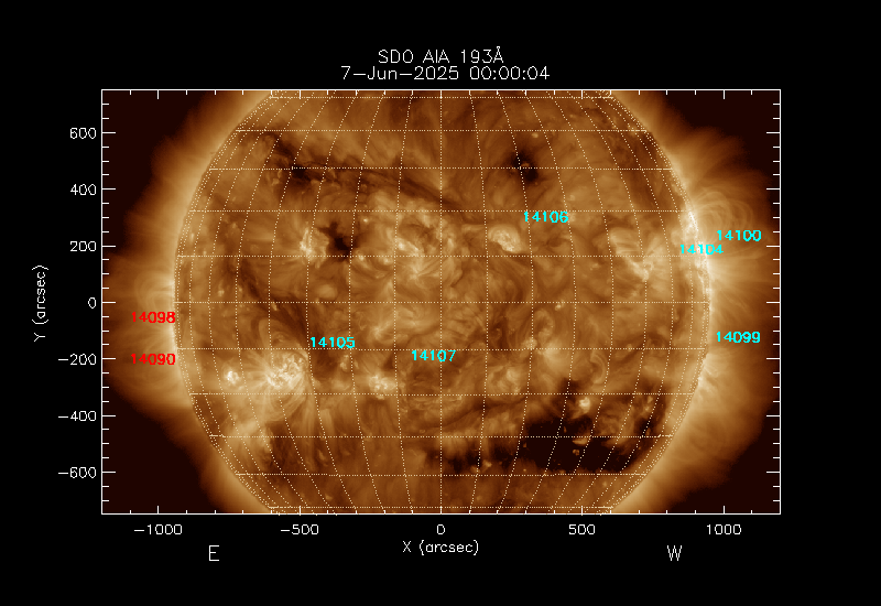 The 5 digit numbers in turquoise designate Active Regions;