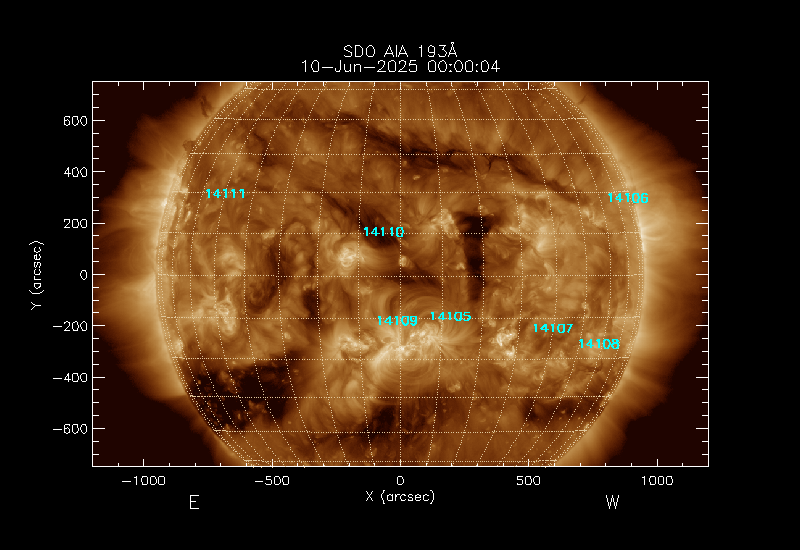 The 5 digit numbers in turquoise designate Active Regions;